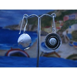 Nous vous offrons des bijoux en argent fabriqués à l'aide d'une coquille operculum qui, une fois polie, devient un superbe et extraordinaire bijou d'un côté de l'œil Shiva. C'est une belle spirale. La couleur varie de beige à vert foncé, selon le régime de l'escargot de mer, tandis que le fond reste toujours blanc laiteux. Également connu sous le nom d'oeil Shiva, il est considéré dans le monde entier comme un charme chanceux.